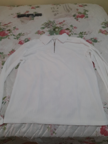 Great long sleeve shirt. zipper is shine and pops. good color selection. material is a little stretchy. Great long sleeve shirt. zipper is shine and pops. good color selection. material is a little stretchy.