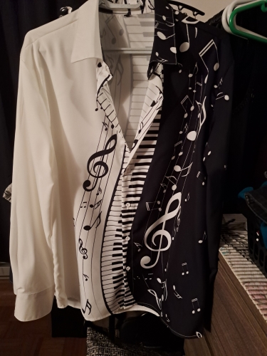 Stilig skjorte og et «must» for musikere. Har brukt den ute på noen spillejobber og har fått hyggelige tilbakemeldinger. «Kul skjorte pianoman» har jeg hørt et par ganger. Da blir det god stemning rundt flygelet !! Stilig skjorte og et «must» for musikere. Har brukt den ute på noen spillejobber og har fått hyggelige tilbakemeldinger. «Kul skjorte pianoman» har jeg hørt et par ganger. Da blir det god stemning rundt flygelet !!
