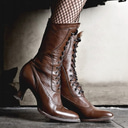 stivali da donna in similpelle marrone con lacci vittoriani e tacco basso - classici ed eleganti per cosplay, feste in maschera e abiti di ispirazione vintage |