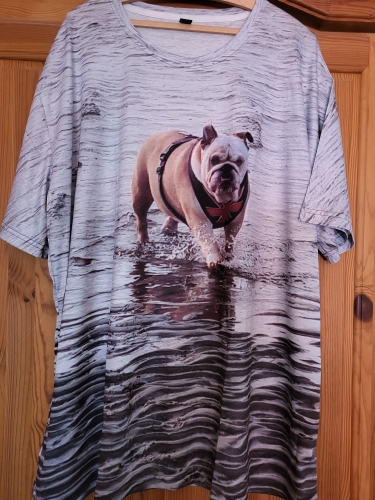 Sehr schönes Shirt, angenehme weiche Qualität, fließender Stoff, die Druck-