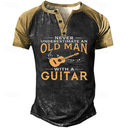 Maglietta Henley da uomo Non sottovalutare mai un vecchio con una chitarra | Maglietta grafica divertente per musicisti a maniche corte |