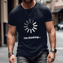 Maglietta divertente con umorismo tecnologico da uomo 'Sto pensando...' Grafica caricamento spinner a maniche corte |