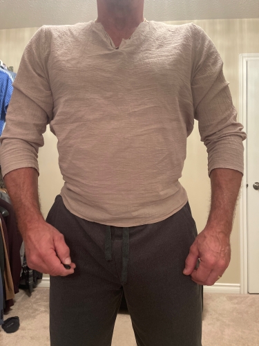 Large was no good for boyfriend, for whom I’d ordered it, but perfect for me. I want good coverage, comfort, natural and cool fabric to dress for teaching. I’m 5’6”, 157 lbs, 36.5 chest. He’s 5’10”, 198 lbs, 45” chest, 19” shoulder to shoulder. Large was no good for boyfriend, for whom I’d ordered it, but perfect for me. I want good coverage, comfort, natural and cool fabric to dress for teaching. I’m 5’6”, 157 lbs, 36.5 chest. He’s 5’10”, 198 lbs, 45” chest, 19” shoulder to shoulder.