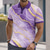 男性用 幾何学的な ライン ポロシャツ 半袖 ポロシャツ 襟付きシャツ カジュアル アスレイジャー ボタン 春夏 ブルー ピンク パープル
