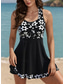 女性用水着 スイムドレス お腹引き締め タンキニ水着 バックレス お腹引き締め ハイウエスト スリム バケーション ビーチウェア グラフィック Vネック ノースリーブ 水着