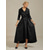 女性用 マキシドレス パーティードレス エレガント ヴィンテージ レギュラー 純色 七分袖 Vネック ブラック 秋 冬