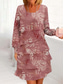 女性用 ひざ丈ドレス シフトドレス カジュアルドレス シフォンドレス レイヤードワンピース エレガント ボヘミア 旅行度假风 パーティー 結婚式 新年 レギュラー フラワー 長袖 クルーネック スクープネック ブルー マルーン ホワイト ピンク 夏 春 秋 冬