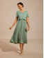 女性用 ミディドレス サテンドレス パーティードレス 二次会ドレス / カクテルドレス エレガント ファッション ロマンチック パーティー 結婚式 結婚式のゲスト レギュラー 平織り 半袖 Vネック ブラック シャンパン ワイン グリーン 夏 春