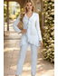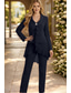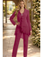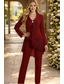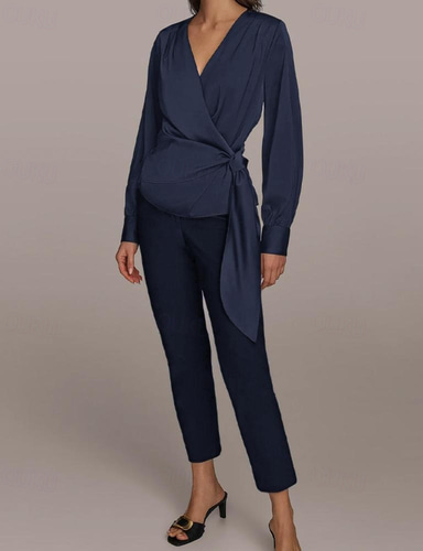 ツーピース パンツスーツ アンクル丈 マダムドS 長袖 Vネック エレガント ヴィンテージ シンプル フォーマル 結婚式のゲスト サテン ストレッチ生地 〜と リボン フリル