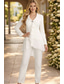 パンツスーツフロアロング母親の花嫁ドレスロングスリーブスcoopネックエレガントシンプルウェディングゲストアップリケソリッドカラー付き