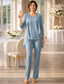 パンツスーツフロア丈母親の花嫁用ドレス3/4丈袖スcoopネックエレガントシンプルウェディングゲストソリッドカラー付き