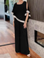 ツーピース パンツスーツ フロア丈 マダムドS 七分袖 Vネック エレガント シンプル カジュアル フォーマル 結婚式のゲスト シフォン 〜と レース 刺繍 アップリケ