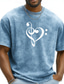 メンズ ミュージック ハート ト音記号 ベース記号 レトロ ヴィンテージ アシッドウォッシュ Tシャツ グラフィック リラックスフィット カジュアル ストリートウェア ミュージシャン ギフト デザイナー アパレル S M L XL XXL XXXL