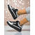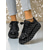 レディースラインストーンプラットフォームスニーカー - ナイトライフパーティーに最適なブラックベルベットのトレンディシューズ