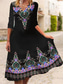 女性用 ミディドレス カジュアルドレス スイングドレス A ラインドレス 自由奔放に生きるドレス ヴィンテージ エスニック カジュアル バケーション 日常 レギュラー フラワー 長袖 クルーネック ブラック 夏