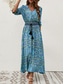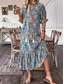 女性用 マキシドレス カジュアルドレス スイングドレス A ラインドレス 自由奔放に生きるドレス カジュアル 日常 レギュラー フラワー ペーズリー ハーフスリーブ Vネック ブルー ブラウン 夏 春 秋