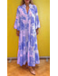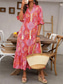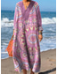 女性用 マキシドレス カジュアルドレス 自由奔放に生きるドレス かわいいスタイル スタイリッシュ カジュアル バケーション 日常 ルーズフィット グラフィック 七分袖 Vネック ルビーレッド ブルー オレンジ 夏 春 秋