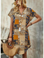 女性用 ミニドレス カジュアルドレス A ラインドレス 自由奔放に生きるドレス ヴィンテージ スタイリッシュ カジュアル バケーション 日常 レギュラー ペーズリー 半袖 Vネック ブラック ワイン 春 秋