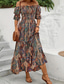 女性用 マキシドレス カジュアルドレス ボヘミアンシックドレス 自由奔放に生きるドレス ボヘミア かわいいスタイル スタイリッシュ バケーション 日常 ビーチ ルーズフィット グラフィック 長袖 オフショルダー オレンジ 夏 春