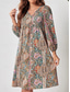 女性用 ミディドレス カジュアルドレス スイングドレス A ラインドレス 自由奔放に生きるドレス カジュアル バケーション 日常 レギュラー フラワー リーフ柄 七分袖 スプリットネック ピンク ブルー パープル 秋