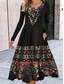 女性用 ロングドレス マキシドレス カジュアルドレス 冬のドレス プリントドレス ヴィンテージ エスニック トライバル風 日常 アウトドア ストリート レギュラー フラワー トライバル 長袖 クルーネック ブラック ルビーレッド ロイヤルブルー ブルー 春 秋 冬