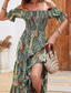 女性用 ロングドレス マキシドレス A ラインドレス サマードレス 自由奔放に生きるドレス エレガント ボヘミア スタイリッシュ バケーション 日常 デート レギュラー グラフィック 半袖 オフショルダー グリーン ダークブルー 夏