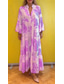 女性用 ロングドレス マキシドレス カジュアルドレス スイングドレス サマードレス エレガント ファッション 近代の 日常 ビーチ 週末 レギュラー フラワー 長袖 スプリットネック ライトグリーン ピンク ルビーレッド ライトパープル 夏