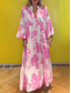 女性用 ロングドレス マキシドレス ヴィンテージドレス カジュアルドレス スイングドレス 自由奔放に生きるドレス スタイリッシュ カジュアル バケーション 日常 フォームフィット フラワー 半袖 Vネック ピンク アプリコット 夏 春