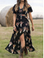 女性用 ミニドレス 自由奔放に生きるドレス プリントドレス ファッション クラシック 日常 ビーチ 週末 レギュラー フラワー ハーフスリーブ Vネック ブラック 夏