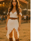 ウィメンズ ボヘミアン ドレス ウェスタン ドレス ヴィンテージ ミディ ドレス スリップ ドレス オフショルダードレス バケーション アウトドア 外出 スリムフィット グラフィック ノースリーブ スパゲッティストラップ ホワイト サマー