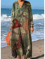 女性用 マキシドレス ボヘミアンシックドレス 自由奔放に生きるドレス スタイリッシュ カジュアル バケーション 日常 レギュラー フラワー 長袖 Vネック ブラック グリーン カーキ色 春 秋