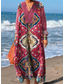 女性用 マキシドレス カジュアルドレス スイングドレス 自由奔放に生きるドレス カジュアル 日常 レギュラー 幾何学模様 七分袖 シャツカラー ルビーレッド グレー 夏 春 秋