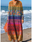 女性用 マキシドレス カジュアルドレス A ラインドレス 自由奔放に生きるドレス ヴィンテージ カジュアル バケーション 日常 レギュラー 幾何学模様 長袖 Vネック ホワイト 春 秋