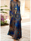 女性用 マキシドレス カジュアルドレス 長袖ボヘミアンドレス 自由奔放に生きるドレス ボヘミア スタイリッシュ ベーシック バケーション カジュアル 日常 レギュラー グラフィック 七分袖 Vネック マルーン ブルー 夏 春 秋