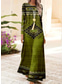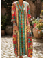 女性用 ロングドレス マキシドレス ペイズリードレス カジュアルドレス ボヘミアンシックドレス 自由奔放に生きるドレス ボヘミア エスニック Aライン バケーション ストリート 祝日 ルーズフィット ペーズリー 長袖 Vネック ピンク ブルー グリーン 夏 春