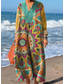 女性用マキシドレス ボヘミアン サンドレス Aラインドレス バケーション カジュアル パーティー ホリデー ビーチ ルーズフィット フローラルグラフィック ジオメトリック ロングスリーブ Vネック 黄色 赤 フューシャ オレンジ 夏 春 秋