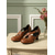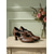 1950年代のヴィンテージブラウンフェイクレザーバックル&ブローグメリージェーンヒールのレディースパンプス。フォーマルなシーン、オフィス、昼夜を問わず履けるエレガントなパンプス。