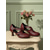 1950年代のヴィンテージバーガンディのフェイクレザーパンプス。フォーマルなイベント、パーティー、普段使いにぴったりの、調節可能なバックル付きのエレガントなメリージェーンヒール。