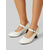 レディース 1920年代 ヴィンテージ Tストラップ パンプス - エレガントなホワイト &華やかな20年代のパーティーやフラッパーコスチュームにぴったりの、スカラップメタリックトリムのゴールドギャツビーヒール &レトロな結婚式