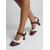 ブローグディテールが施された女性用ブラウンパテントレザーメリージェーンブロックヒールパンプス - オフィスやイブニングウェアに最適なヴィンテージ風ドレスシューズ