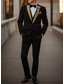 男性用 プロムドレス 結婚式 タキシード パーティー ブラック+ベージュ ダークブルー ジャカード スリムフィット 3点セット シングルブレスト 一つボタン