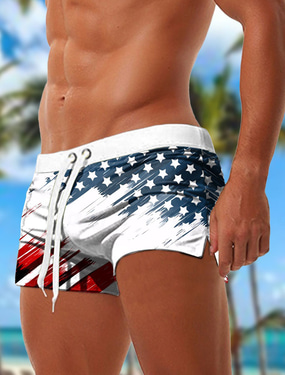 男性用 フラッグ 7月4日 米国建国250周年 アメリカの国旗 スイムトランク スイムショーツ ボードショーツ ミディアムウエスト ファッション デザイナー ビーチ 祝日 スイミングプール ドローストリング ポケット 弾性ウエスト デザイナー 衣類