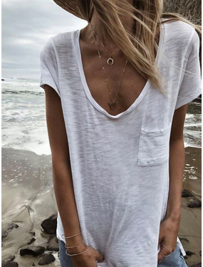 Tシャツ 女性用 ブラック ホワイト ピンク 平織り セクシー ストリート 日常 ファッション Vネック レギュラー S