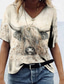 女性用 Tシャツ 長袖 Vネック 長袖 チュニック ヴィンテージ エスニック 牛 パッチワーク プリント 半袖 レギュラー トップス ホーム カジュアル デイリー ベージュ 予備