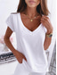 女性用 ブラウス 純色 スタイリッシュ カジュアル 半袖 Vネック レギュラートップス 日常 ホワイト ピンク パープル グレー 夏