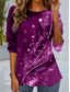 ウィメンズ Tシャツ クルーネック 長袖 チュニック カジュアル プリント レギュラー トップス デイリー ブルー パープル グリーン 春 秋
