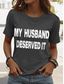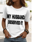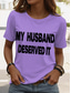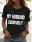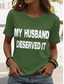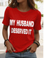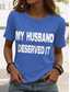女性用 Tシャツ プリント グラフィック レタード ヴィンテージ スタイリッシュ クラシック 半袖 クルーネック レギュラートップス 日常 週末 ブルー ブラック ホワイト ピンク アーミーグリーン 夏 春 Ridicule Husband
