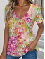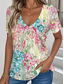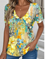 女性用 Tシャツ プリント フラワー グラフィック 植物 ヴィンテージ スタイリッシュ クラシック 半袖 Vネック レギュラートップス 日常 イエロー ピンク グリーン 夏 春