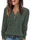 女性用 Tシャツ ボタン 平織り ファッション スタイリッシュ ベーシック 長袖 クルーネック レギュラートップス 日常 週末 ブラック ホワイト グリーン カーキ色 夏