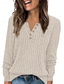 ウィメンズブラウス 無地ヴィンテージトロピカル スタイリッシュ 長袖 Vネック レギュラー トップス デイリーボタン アイレット ホワイト イエロー ピンク ブルー プレフォール